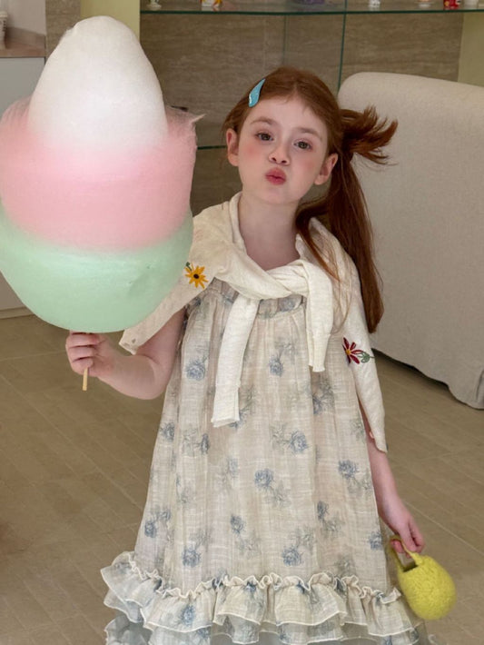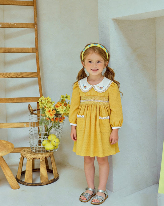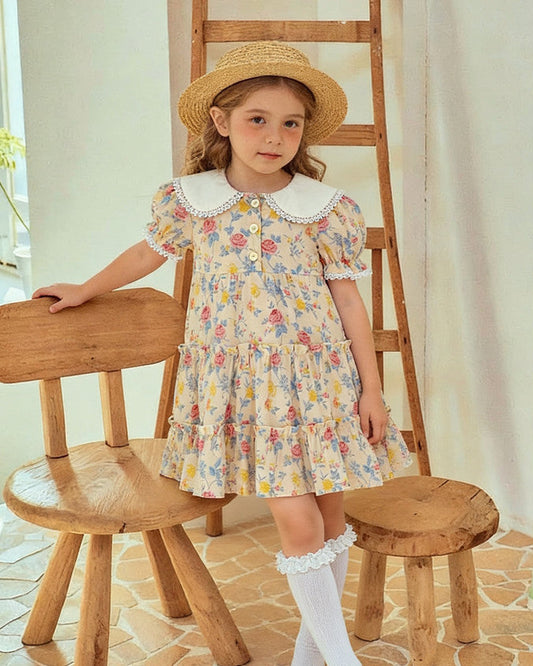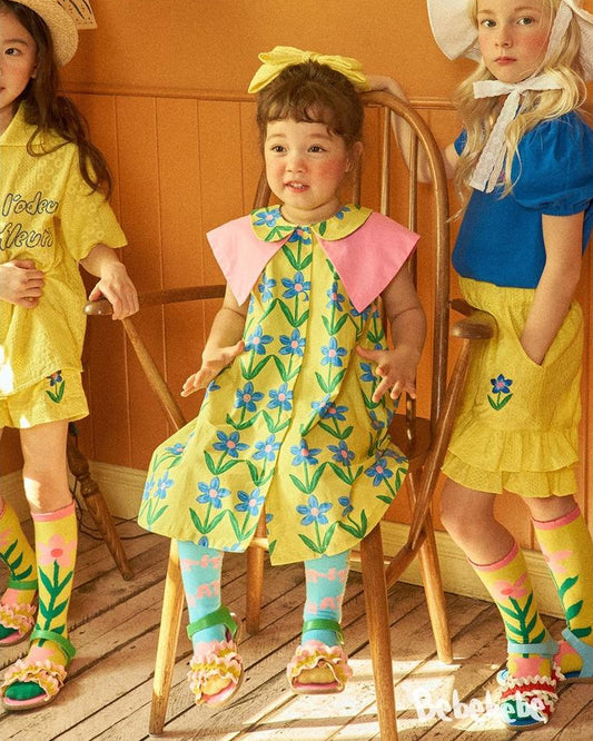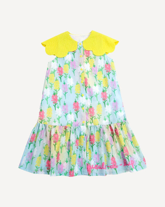 Floral Meadow Scalloped Dress - Sky Blue & Zesty Lemon