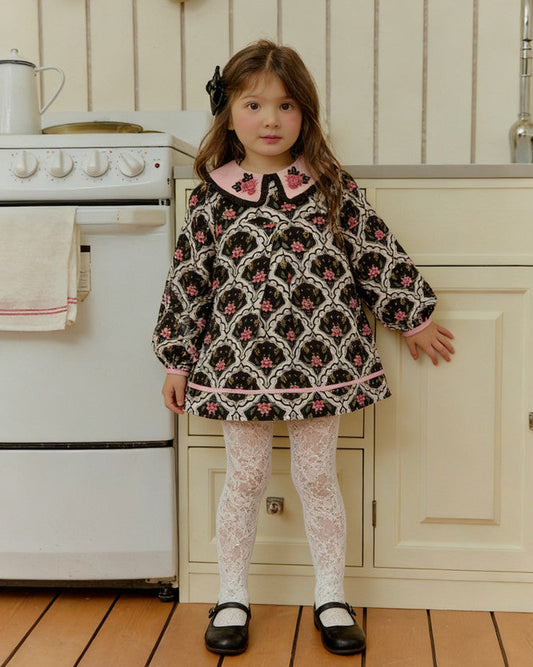 Rose Meadow Embroidery Dress - Midnight Bloom
