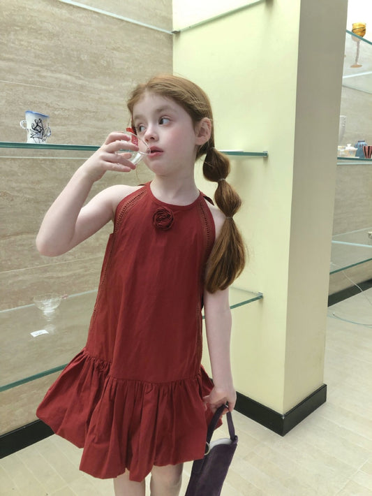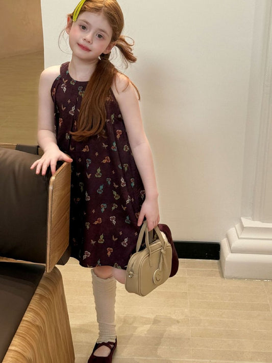 Girls Watermelon Print Dress – Summer Sleeveless Dress with Red Bow Collar