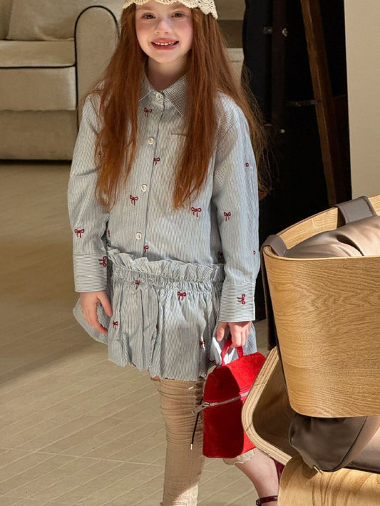 Sophie Bow Embroidered Stripe Shirt Dress - Classic Blue & White