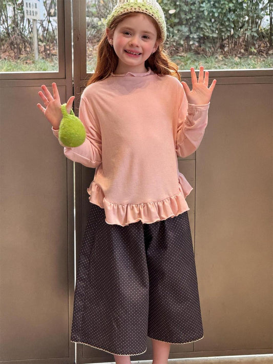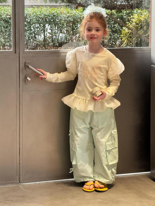 Mia Whimsical Bow Ruffle Top - Peach & Cream