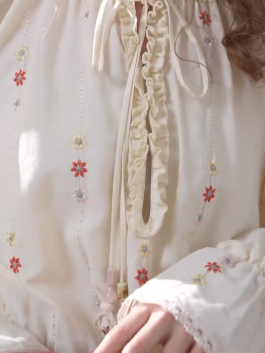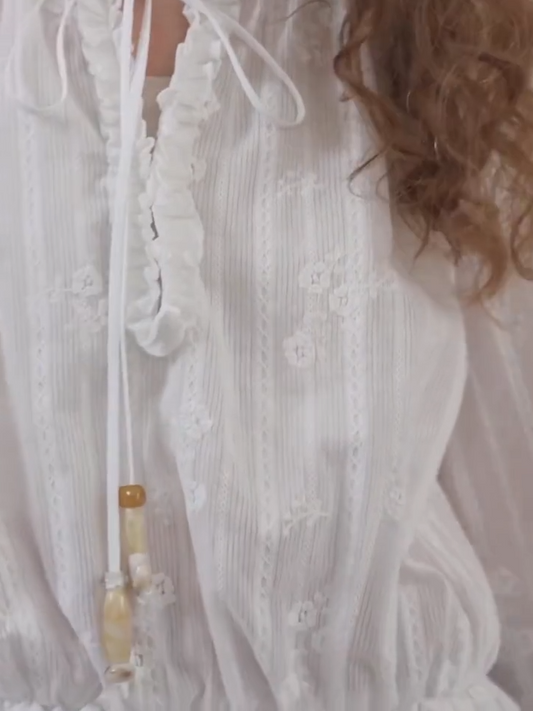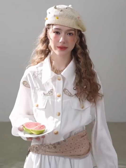 Embroidered Waist Tie Shirt Dress – White