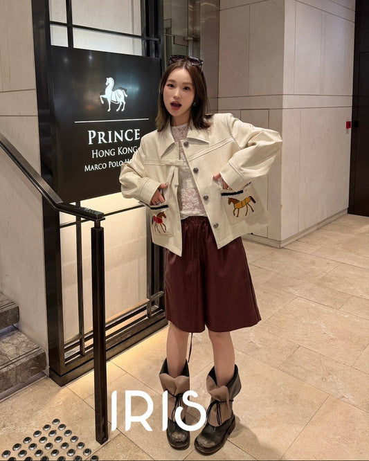 Vacation in HK |Horse Embroidered Faux Leather Jacket
