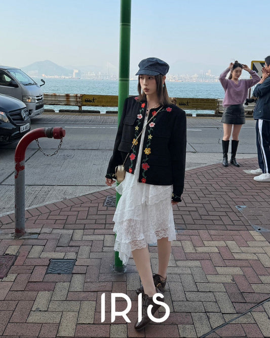 Vacation in HK | Blooming Floral Embroidered Black Jacket