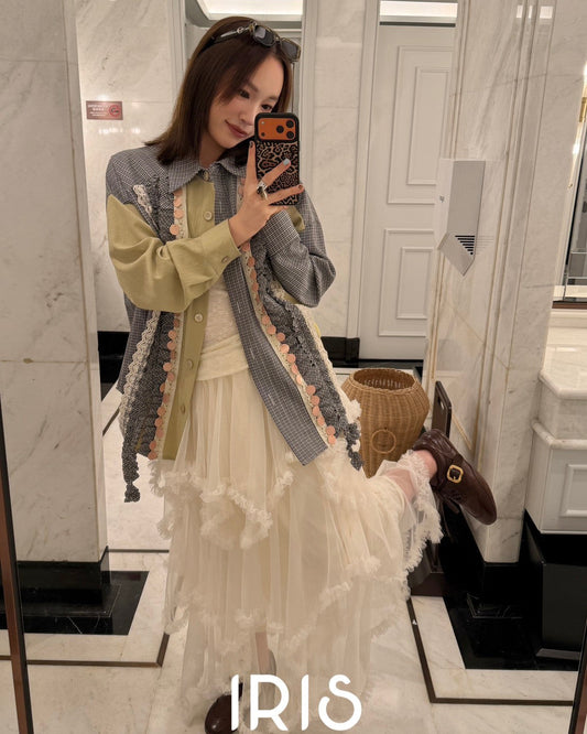 Vacation in HK |Sweet Girl Lace Base Layer Top & Soft cream layering shirt