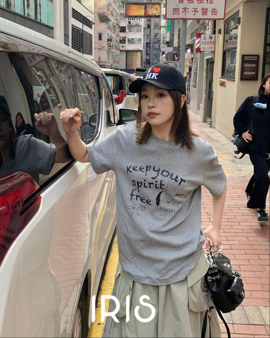 Vacation in HK |Graphic Lettering Short-Sleeve Tee in Grey