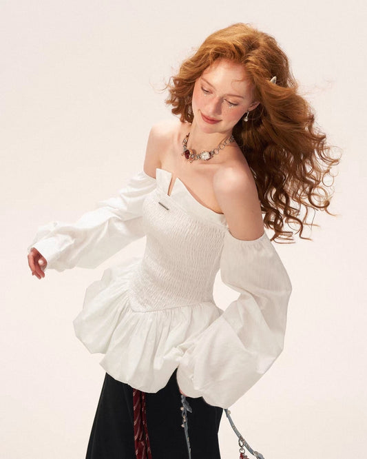 Elara Off-Shoulder Smocked Peplum Top