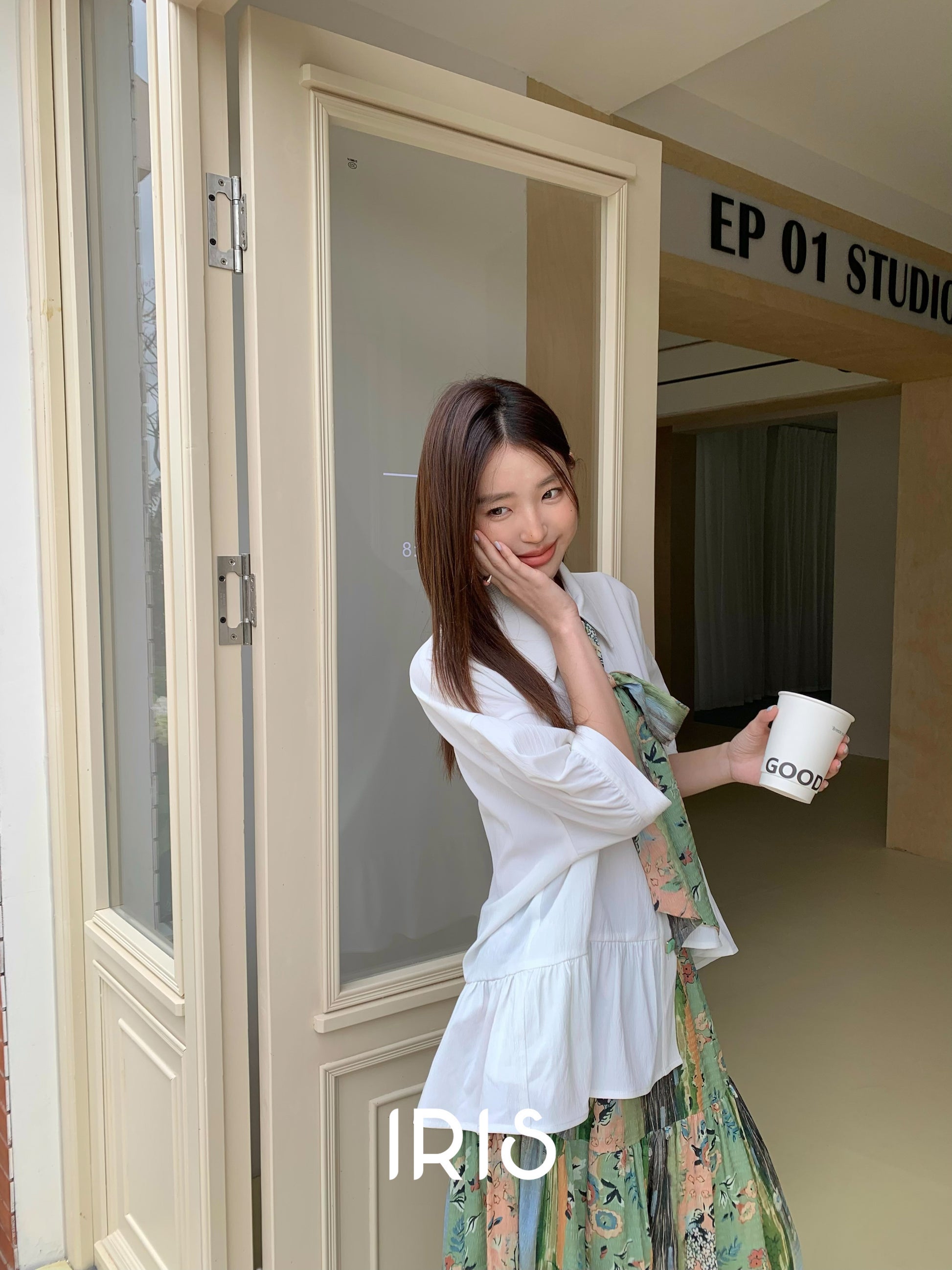 A breath of fresh air for your artistic soul. Our Cloud Tie-Neck Oversized Shirt from the Iris Boutique New Collection is a whimsical fusion of classic shirting and bohemian romance. Drenched in a crisp Arctic White, this shirt is defined by its innovative integrated floral silk-tie collar, adding a burst of vintage-inspired color to a minimalist silhouette.